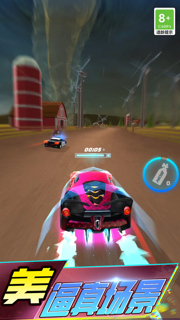 1、探索赛道中隐藏的彩蛋和神秘区域,推动游戏剧情围绕欢乐驾驶不断展开。