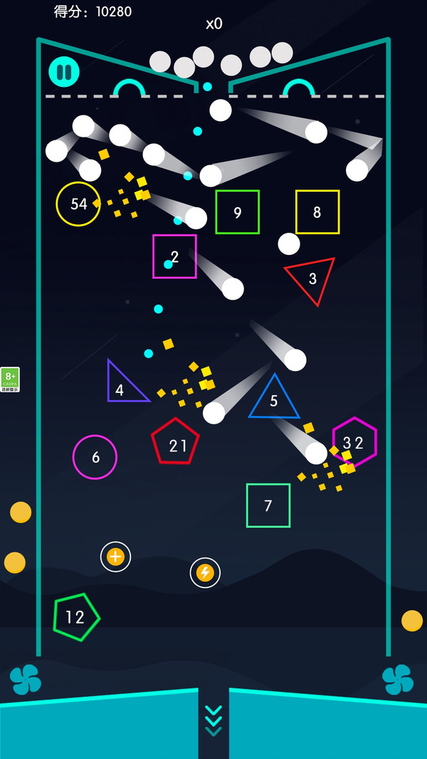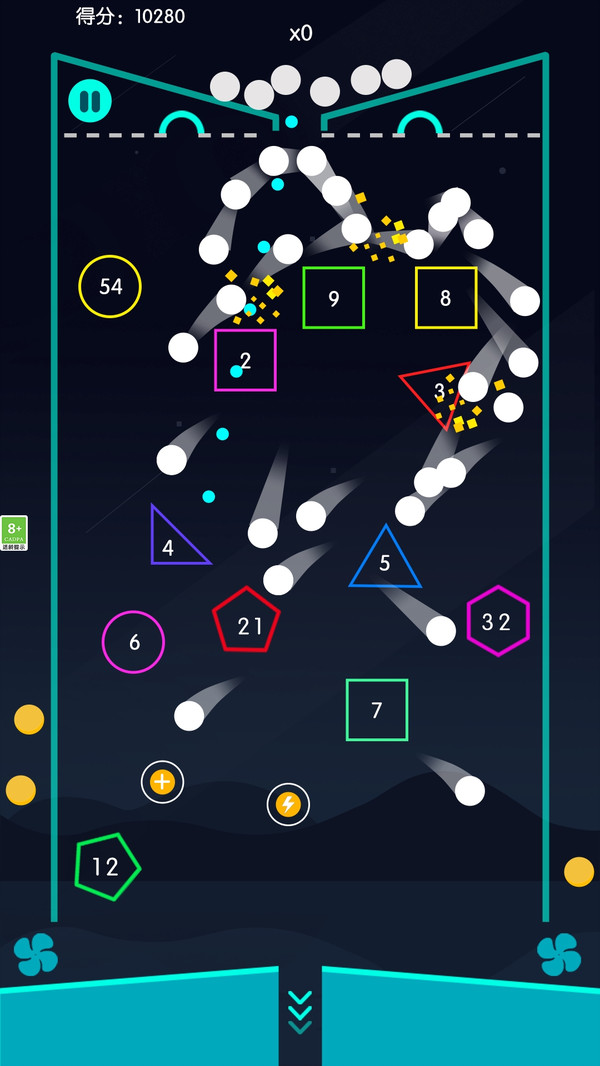 3、而在射击模式中,玩家则需从屏幕底部向上方发射小球,通过不断的撞击来消除所有的数字方块。