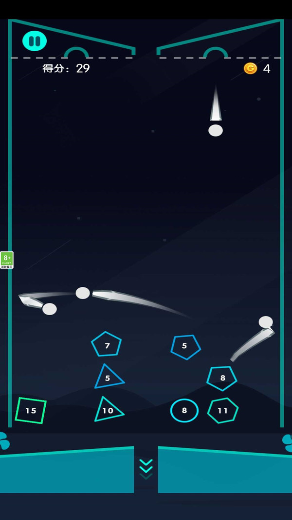 2、在掉落模式下,玩家需要射击位于屏幕上方的弹球集群,考验的是快速反应和精准打击能力。