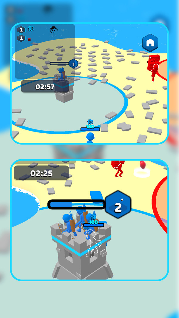 1、玩家需操控部队在海岛地图上争抢木板,并将木板用于升级己方防御塔,从而提升其攻击力、射程和兵力。