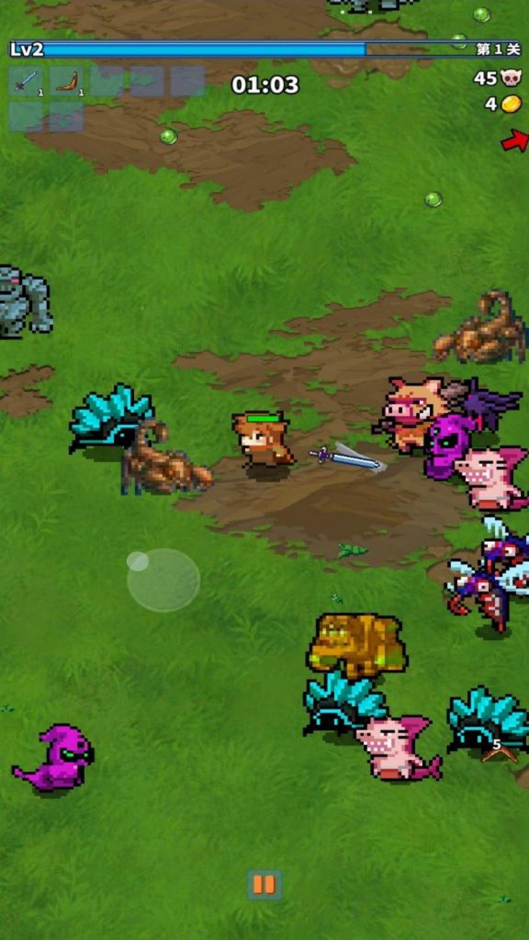 2、开始战斗,从第一关开始,移动自己的英雄战斗;