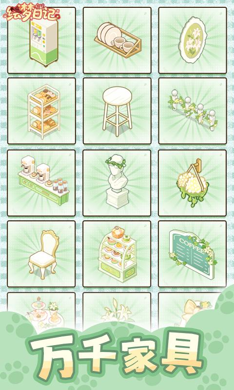 绘梦日记是一款轻松休闲的小店模拟经营游戏,在游戏中,玩家将进入一个破旧的小店,需要玩家将陈旧的装饰开始翻新,经营不同类型的小店,风格多种多样,打造理想中的治愈空间,吸引大量的顾客,你的任务,就是通过精心的装修与温暖的服务,将这里打造成一个充满阳光、咖啡香和呼噜声的梦幻小店,结识形形色色的客人,书写一本专属于你的、最柔软的开店日记!