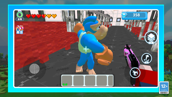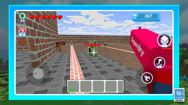 1、进入游戏,第一人称视角开始冒险,射击不同的怪物,可以自由的更换不同的武器。