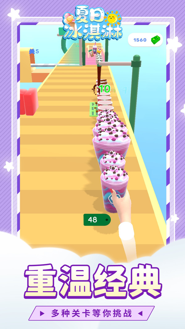 夏日冰淇淋是一款充满甜蜜气息的休闲跑酷游戏,它将带你进入一个由糖果和冰淇淋构筑的梦幻世界。在这个色彩斑斓的夏日乐园里,你将扮演一位可爱的冰淇淋小师傅,沿着无穷无尽的甜品轨道不断前进。游戏的核心乐趣在于一边奔跑闯关,一边收集各式各样的冰淇淋原料,然后用这些收集到的材料来制作出口味各异的特色冰淇淋。每一关都设计了不同的挑战和障碍,需要你灵活躲避同时尽可能多地收集素材。通过不断前进,你可以解锁新的关卡和角色,还能升级你的冰淇淋制作工坊。这款游戏完美结合了跑酷的刺激感和模拟经营的成就感,让人一玩就停不下来。