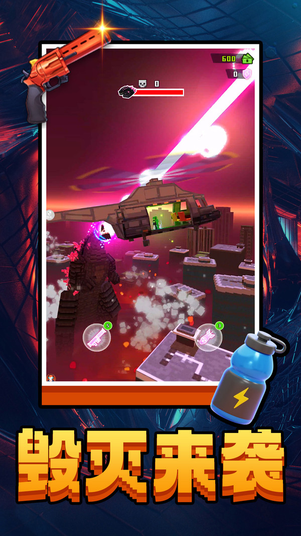 暗夜枪王是一款紧张刺激的第三人称射击游戏。作为城市最后的守护者,你的使命就是挺身而出。利用手中不断升级的强大枪械,与形态各异、拥有独特攻击方式的庞然大物展开殊死搏斗。你需要在高楼林立的战场中灵活穿梭,瞄准巨兽的弱点,在废墟之上守护人类文明最后的希望。通过完成挑战收集奖杯,你将解锁更先进的军火库,不断提升自己的实力以应对愈发严峻的威胁。