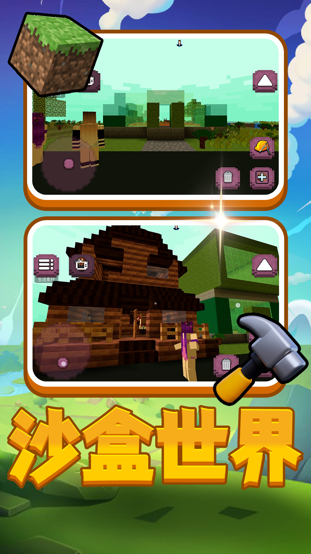 创造与方块是一款融合经典建造、自由探索与策略防御的沉浸式沙盒冒险游戏。在广袤无垠的像素大陆中,你将作为一名初来乍到的开拓者,从采集基础资源起步,逐步建立起属于自己的生存据点。通过砍伐树木、挖掘矿藏、驯养动物获取材料,利用深度合成系统打造工具、武器与建筑组件,在昼夜更替的世界中抵御野兽与敌对生物的侵袭。游戏创新性地融入塔防机制,允许玩家在领地周围设置陷阱、箭塔与围墙,构建多层次防御体系,守护珍贵资源与家园安全。
