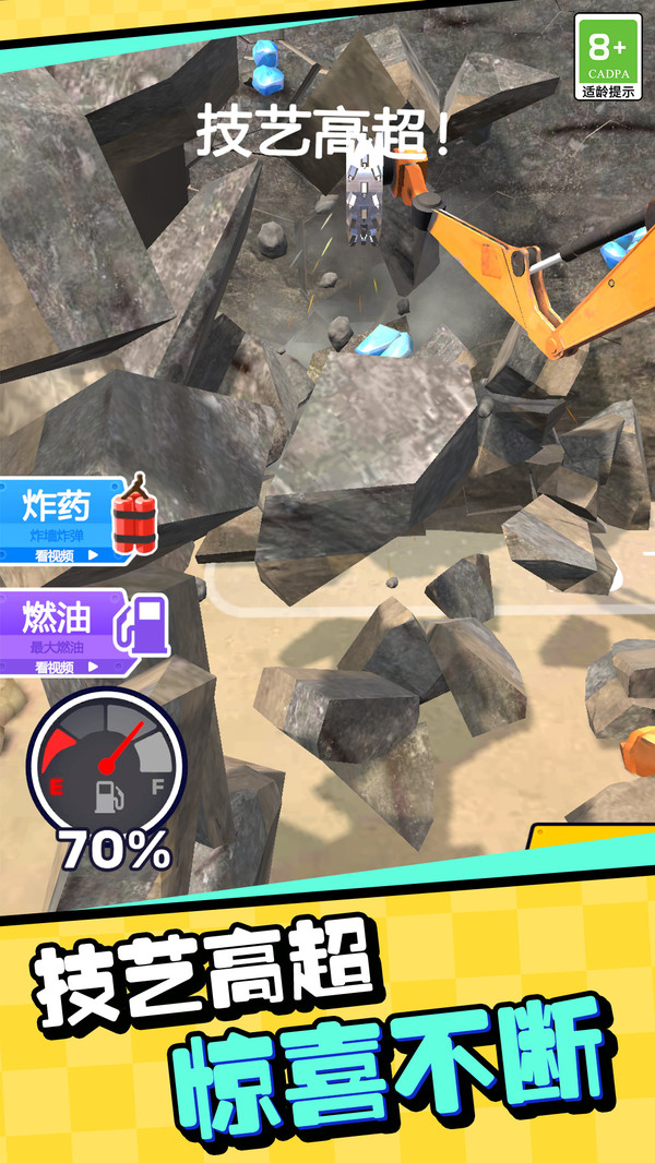 1、在每一层挖掘开始前,玩家可以在网格状的地图上预先规划挖掘机臂的移动和挖掘路径,然后通过精准点击或拖拽来执行操作。