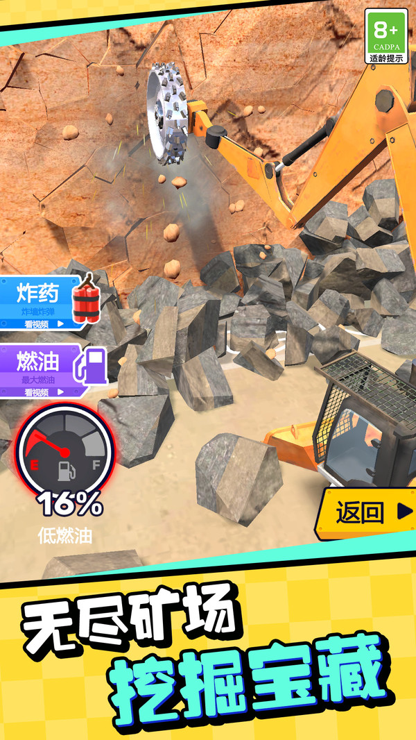 2、挖掘获得的资源是发展的基石。玩家需要合理分配它们,用于升级挖掘机的钻头深度、机械臂长度,或在地面上建造功能各异的设施。