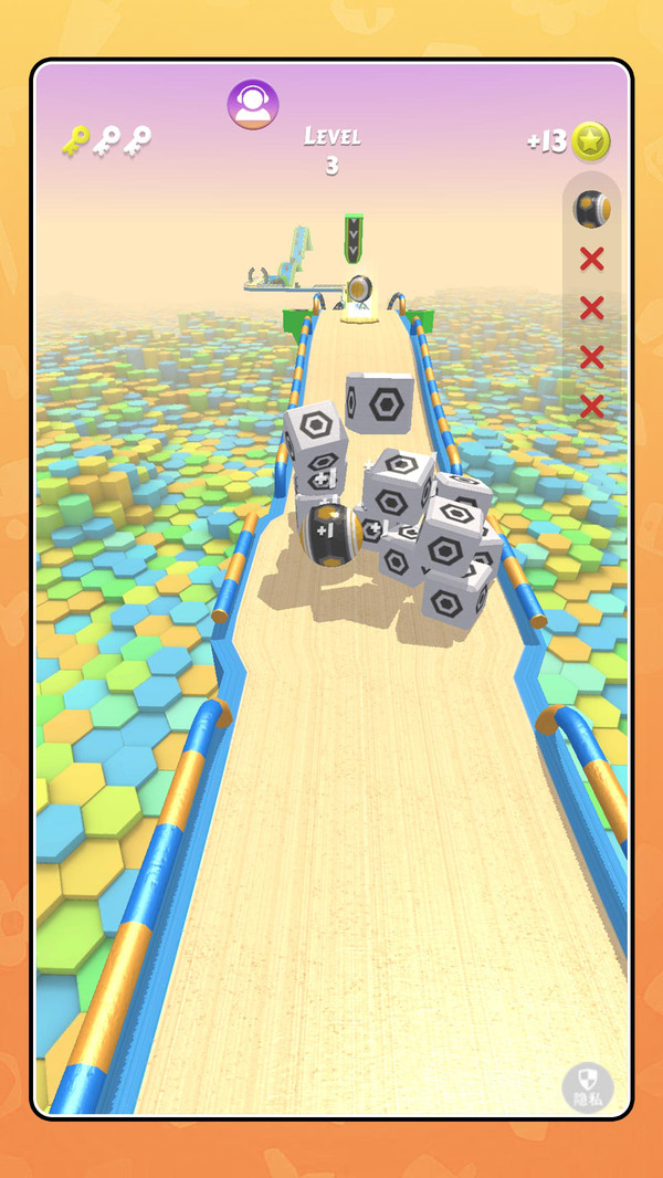 3、过程中不需要复杂的思考,专注于操控小球穿越障碍本身能够帮助玩家转移注意力,有效缓解现实生活中的压力。