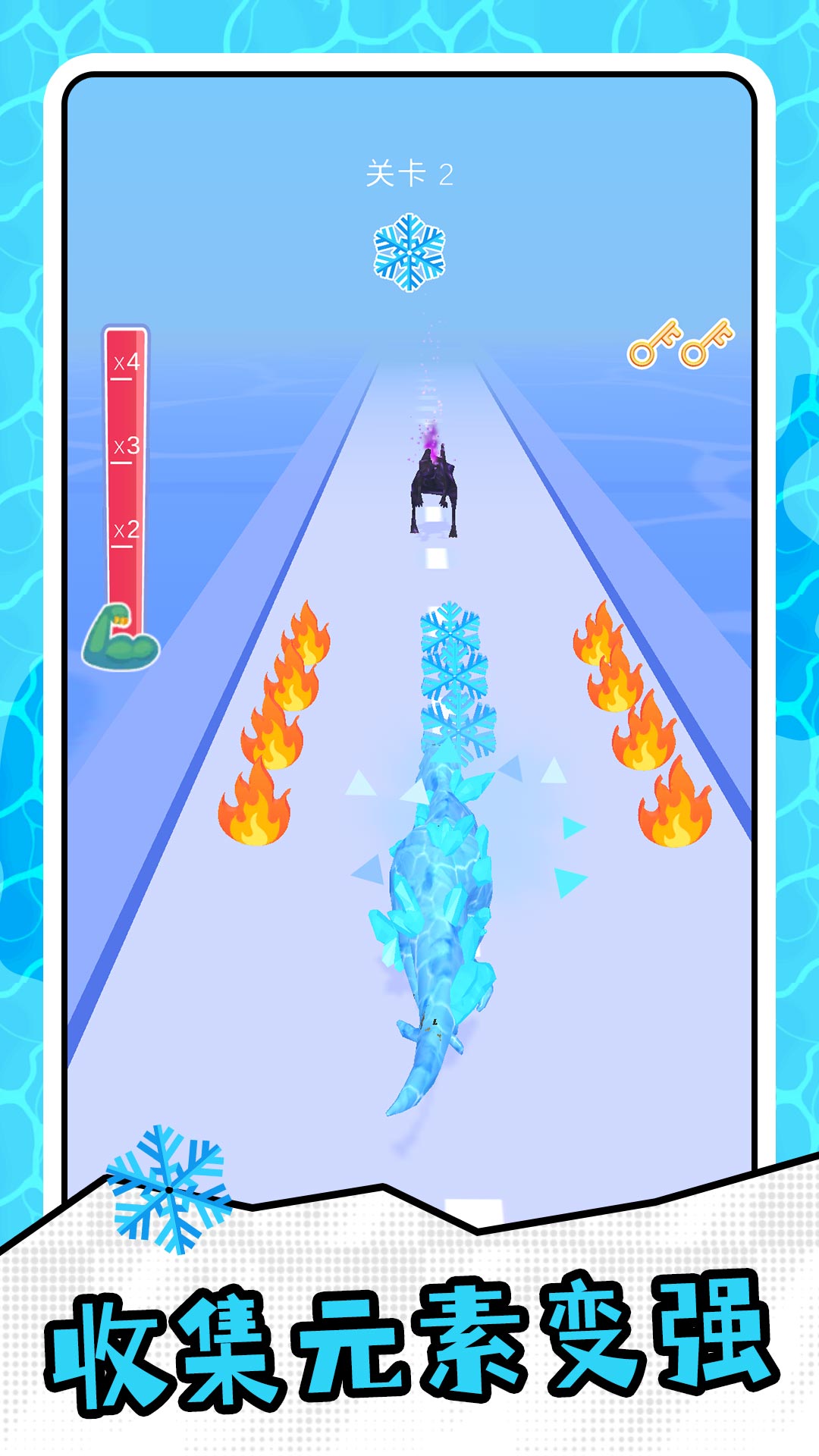2、集齐指定数量元素后触发进化动画,体型与能力全面提升,碾压沿途对手。