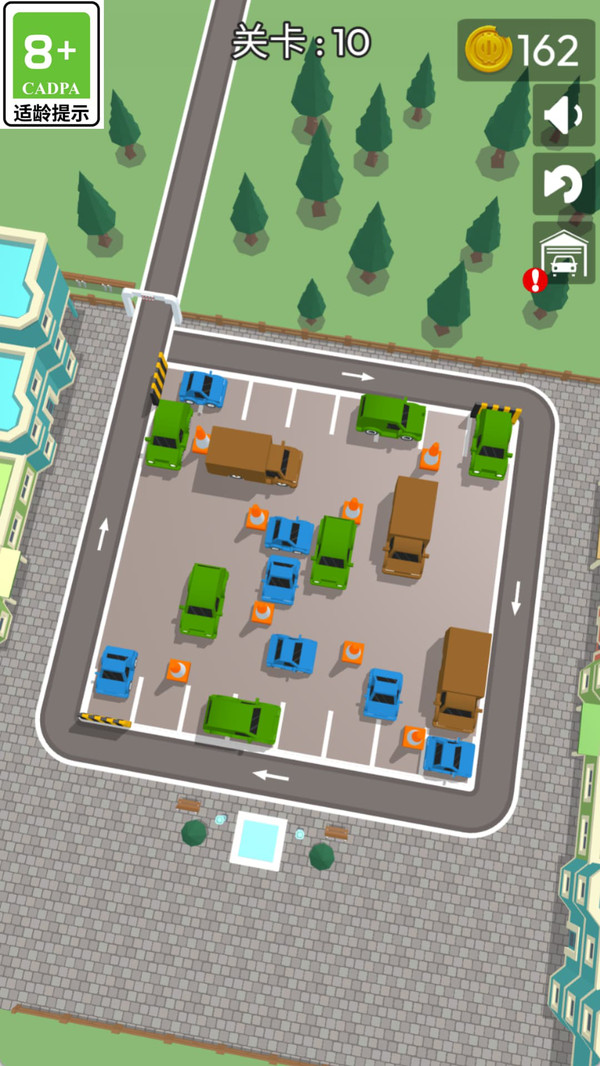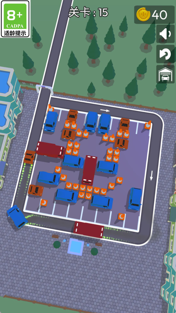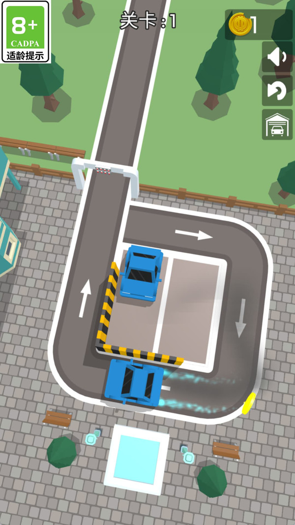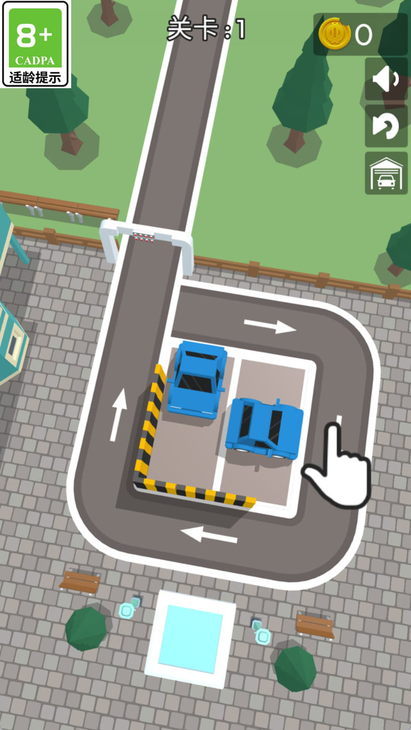 1、进入游戏,点击移动游戏中的车辆,控制车辆顺利的开出停车场。