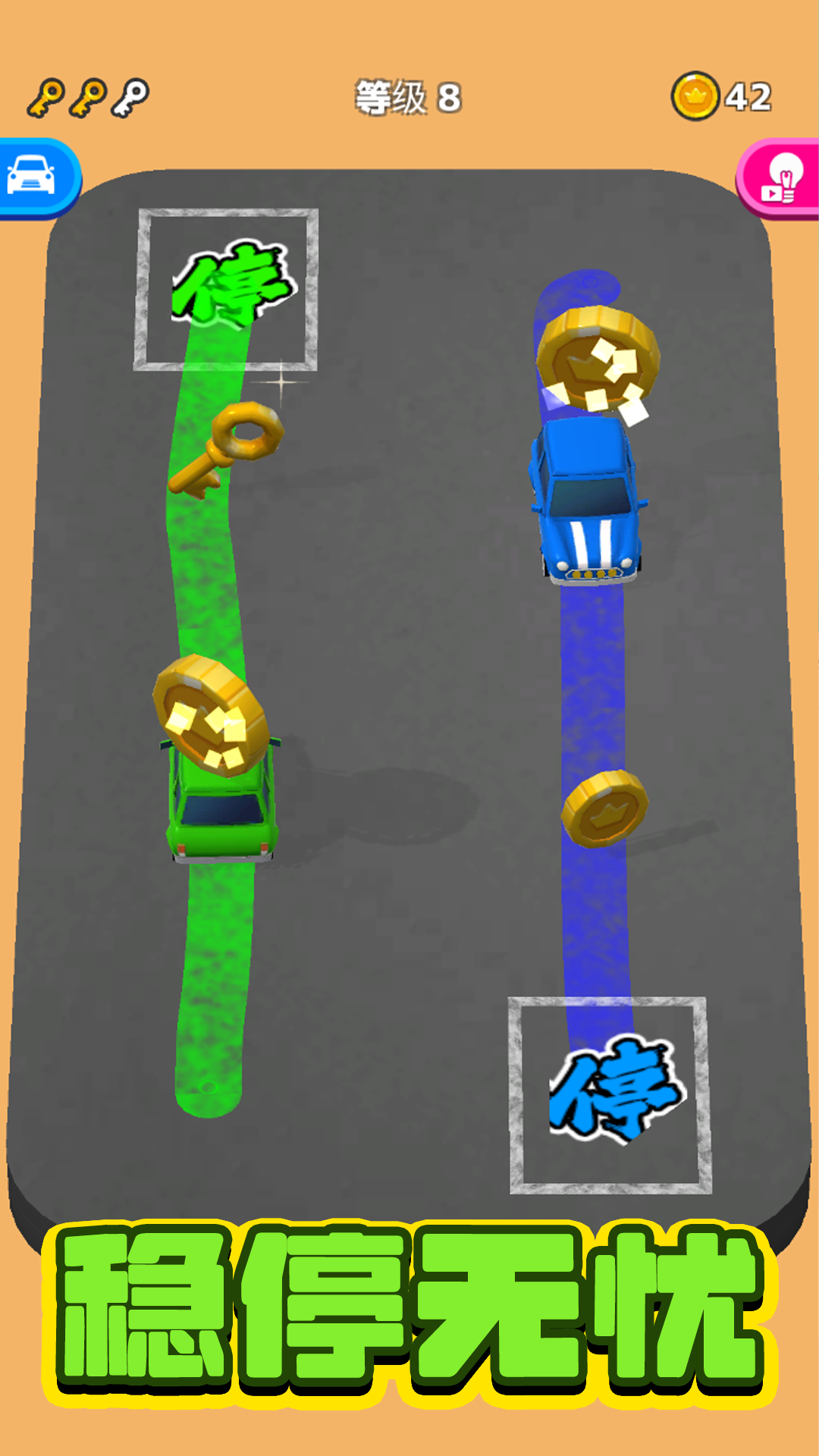 1、只是一个简单的停车游戏,花了半小时去追求一个完美评价,让人欲罢不能的魔力。