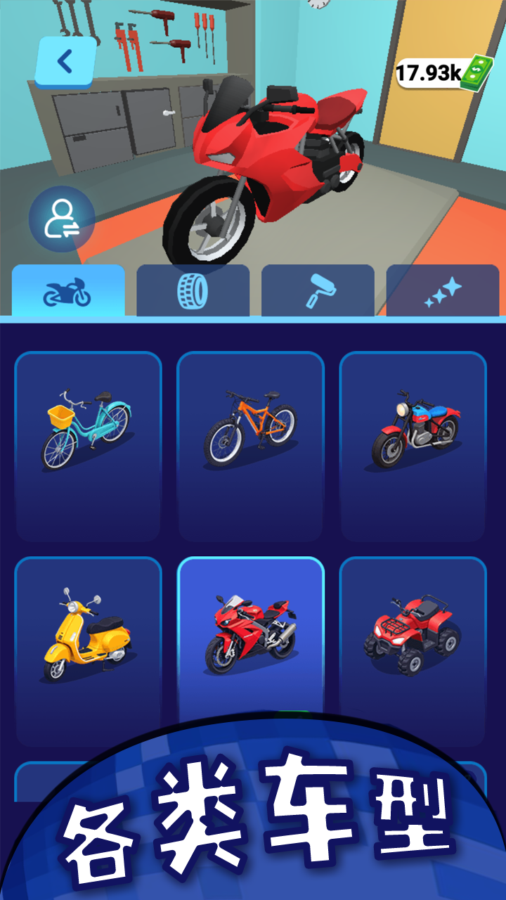 4、继续进行,赚到一定的钱,可以点击右下角的骑车图形,去购买合适的交通工具。