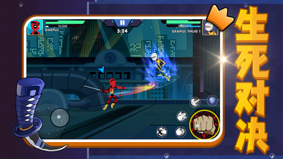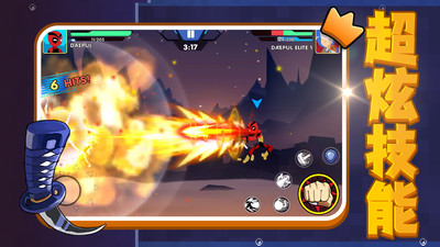 3、通过虚拟摇杆控制火柴人移动,组合按键施展连招,轻击与重击交替使用可打出高伤害。