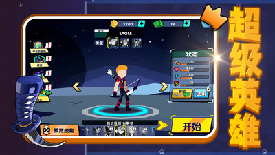 1、进入游戏后,选择你喜欢的火柴人英雄角色,开启后续的对决。