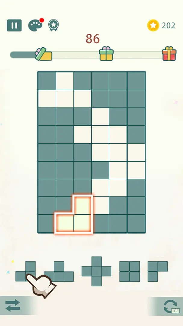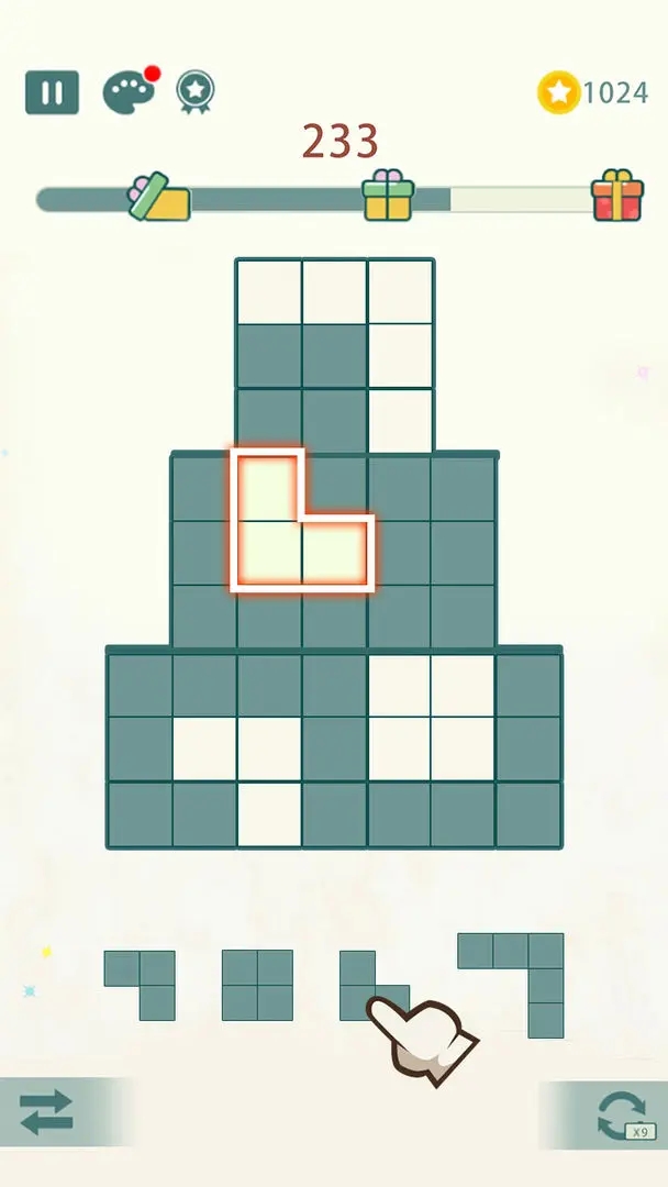1、你需要像一个城市规划师一样,思考如何将L型、田字型等不同形状的方块,精准地投放到最需要它们的那个九宫格里;