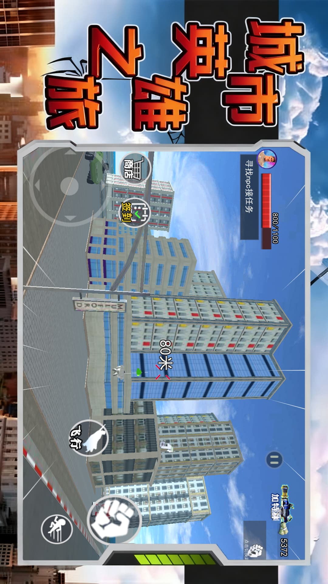 1、进入游戏,化身超人,在城市里冒险;