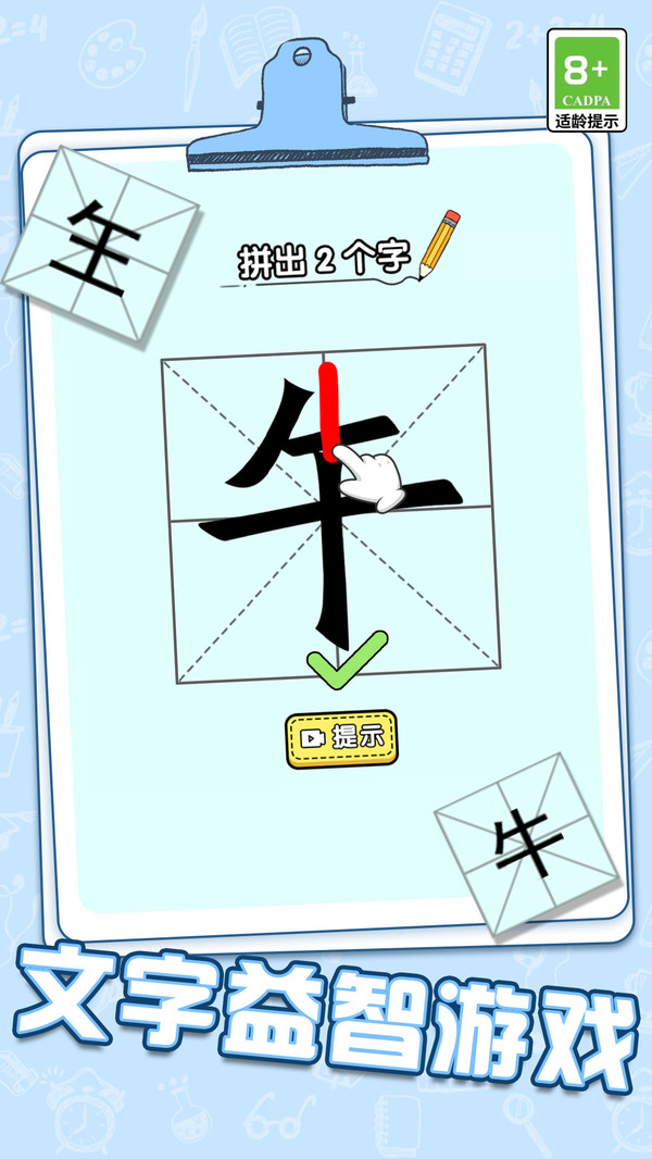 2、文字加一笔玩法,顾名思义,就是通过增减笔画或调整结构生成新字,锻炼汉字构造思维;