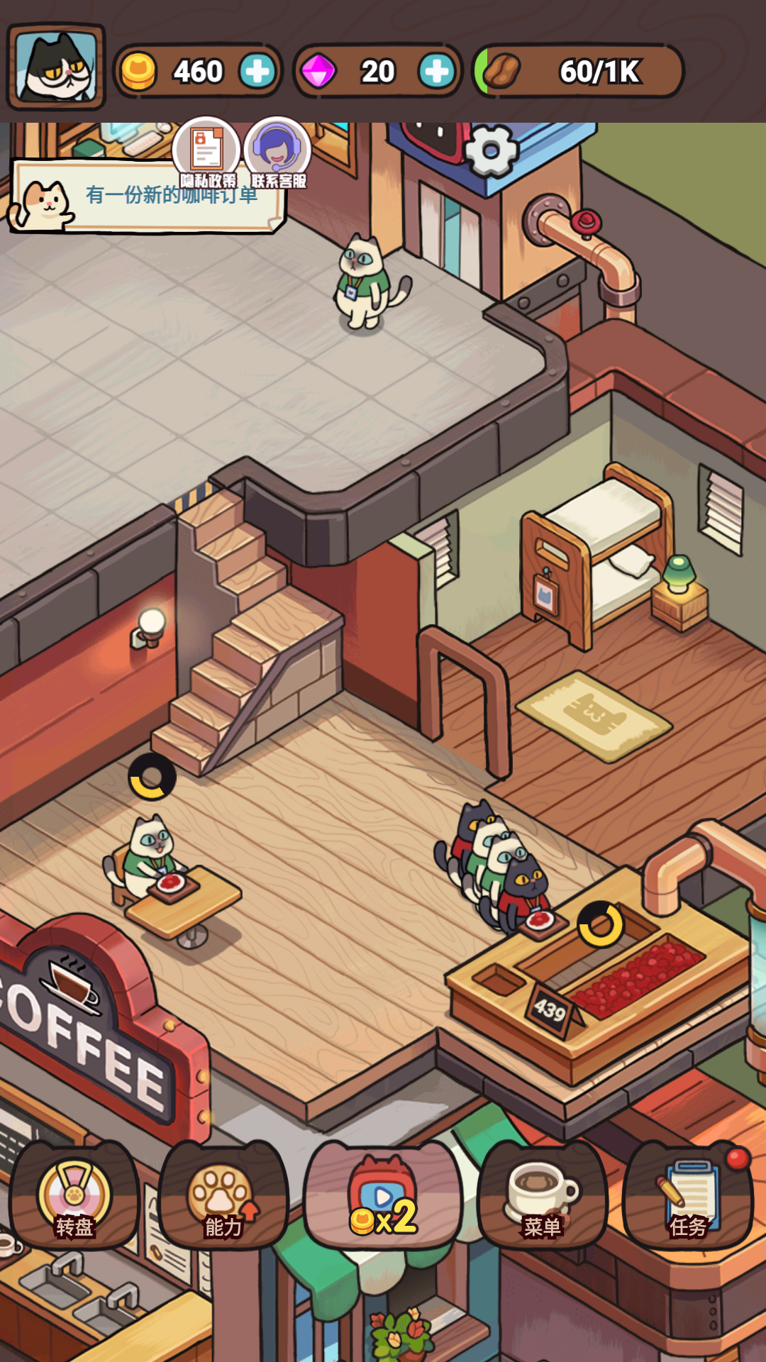 1、以猫咪为核心经营要素,咖啡产量与品质完全取决于猫咪的健康与心情状态,颠覆传统经营玩法。