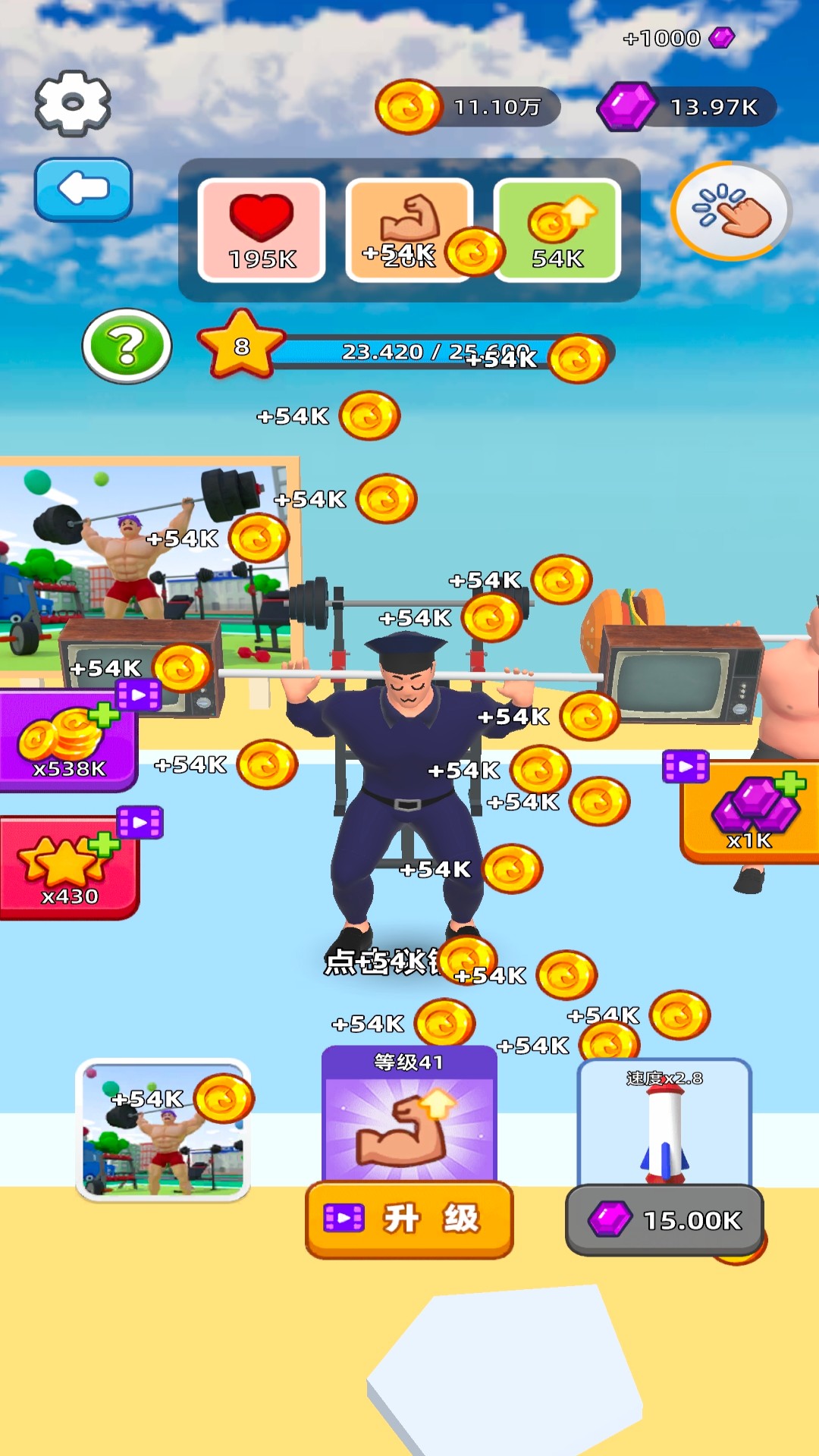2、每日任务与限时挑战交替更新,结合金币与宝石奖励机制,激励玩家保持活跃,养成规律锻炼的好习惯。
