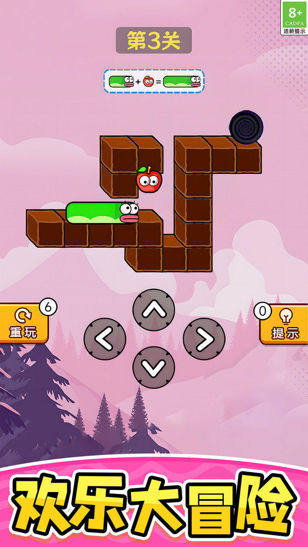 2、关卡采用渐进式设计,前期以基础移动和吞噬为主,后期融入复杂机关、多苹果同步获取等高难度挑战;