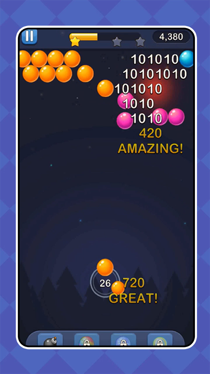3、需要敏锐的观察力与快速的反应力,才能够在气泡闯关中轻松应对,获得更高的挑战得分。