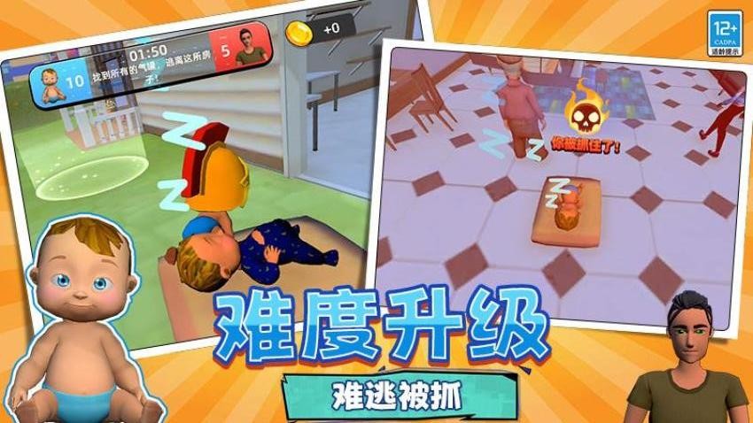 小宝宝大作战手机版是一款融合了潜行、解谜与欢乐元素的3D休闲游戏,想象一下你化身成为一个咿呀学语的婴儿宝宝,为了躲避家长的追捕,你必须开动脑筋,利用对整个房间的了如指掌,在桌椅板凳之间展开一场惊险又可爱的室内大冒险,让你体验从婴儿视角看世界的独特乐趣,开启一场啼笑皆非的躲猫猫之旅。