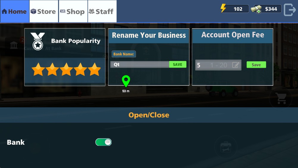4.点击“PLAY”按钮,你就可以开启一场不一样的银行经营之旅。