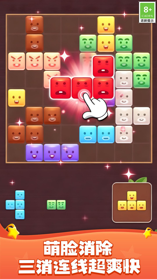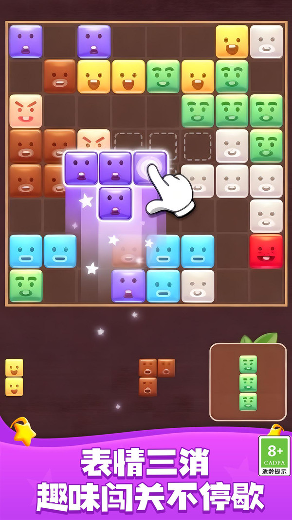 2、移动下方的方块,跟随着指示,放置在合适的空格除,即可消除得分;