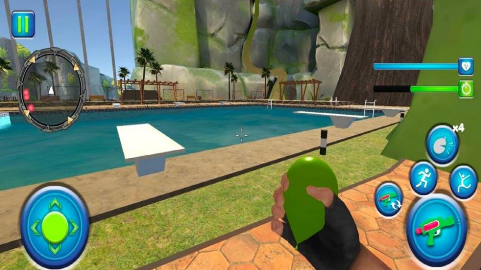 2、摇晃树枝让鸟粪落下,拧开消防栓制造喷泉,按下警示铃引起骚动,巧妙利用环境,升级为全场大混乱。