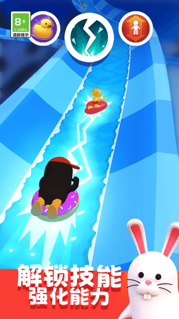 2、部分赛道融入螺旋滑道、环形滑道等过山车式路径,需通过倾斜设备或连续滑动调整角色方向;