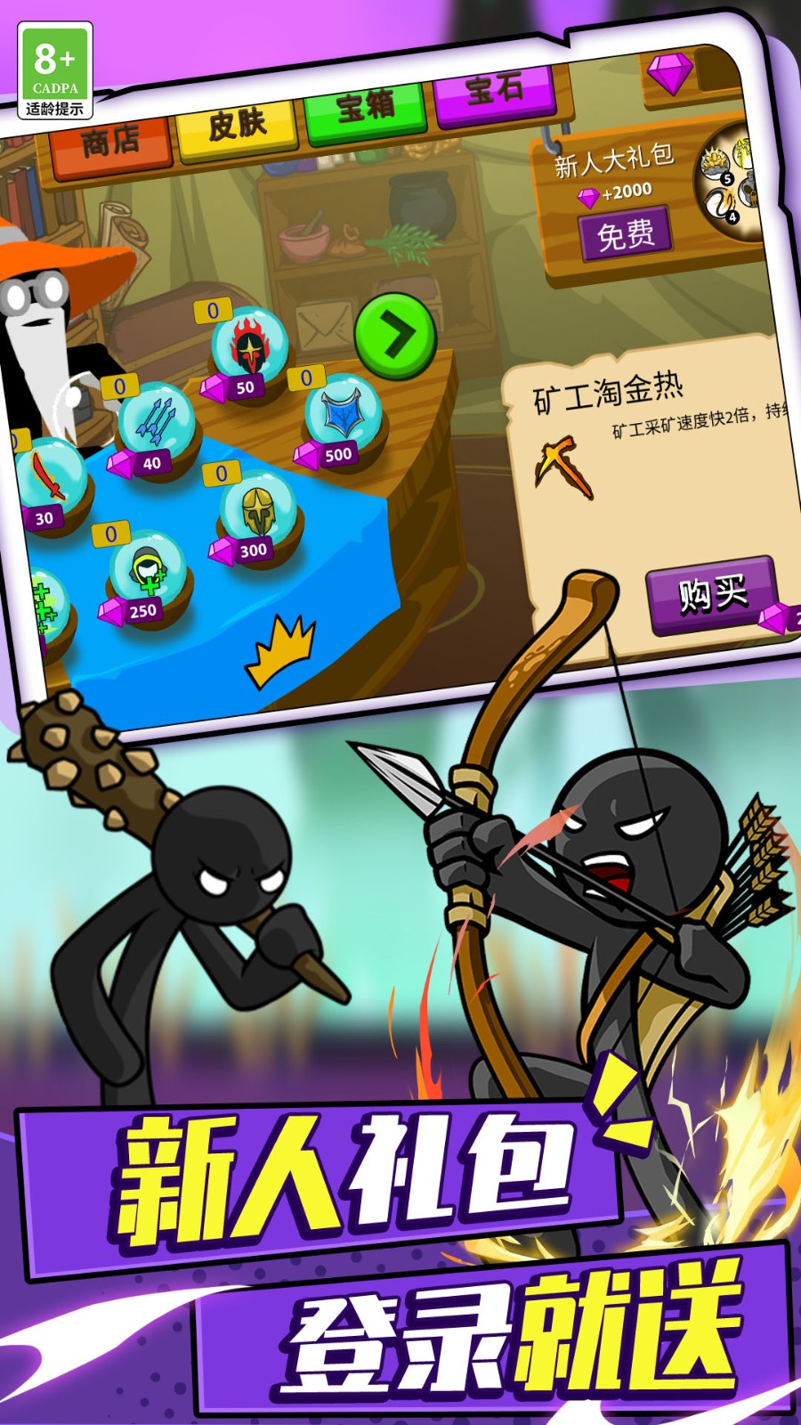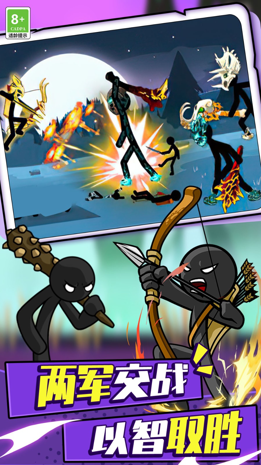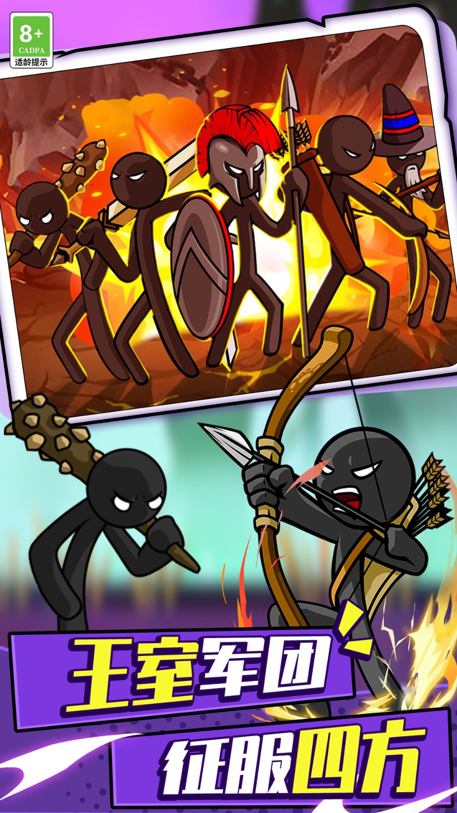 2、超过二十种特色鲜明的火柴人兵种可供召唤,从近战步兵到远程法师构成完整战斗体系。