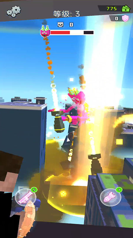4、左摇杆控制飞行方向,射击准星,发射主武器去过关。