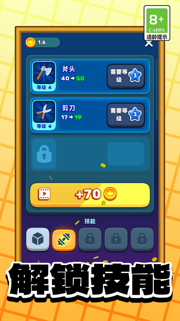 3、保存最快升级速度,提升斧头等级,砍树速度快。