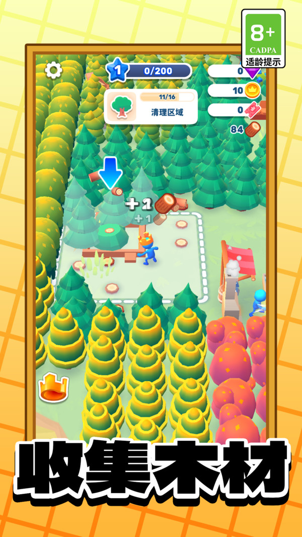 2、不停砍伐树木,收集更多资源,打造最佳房子。
