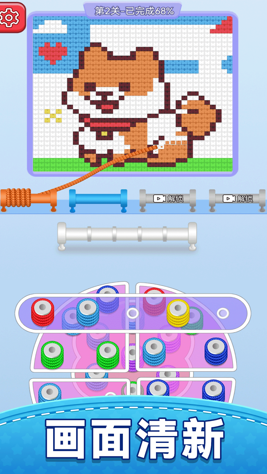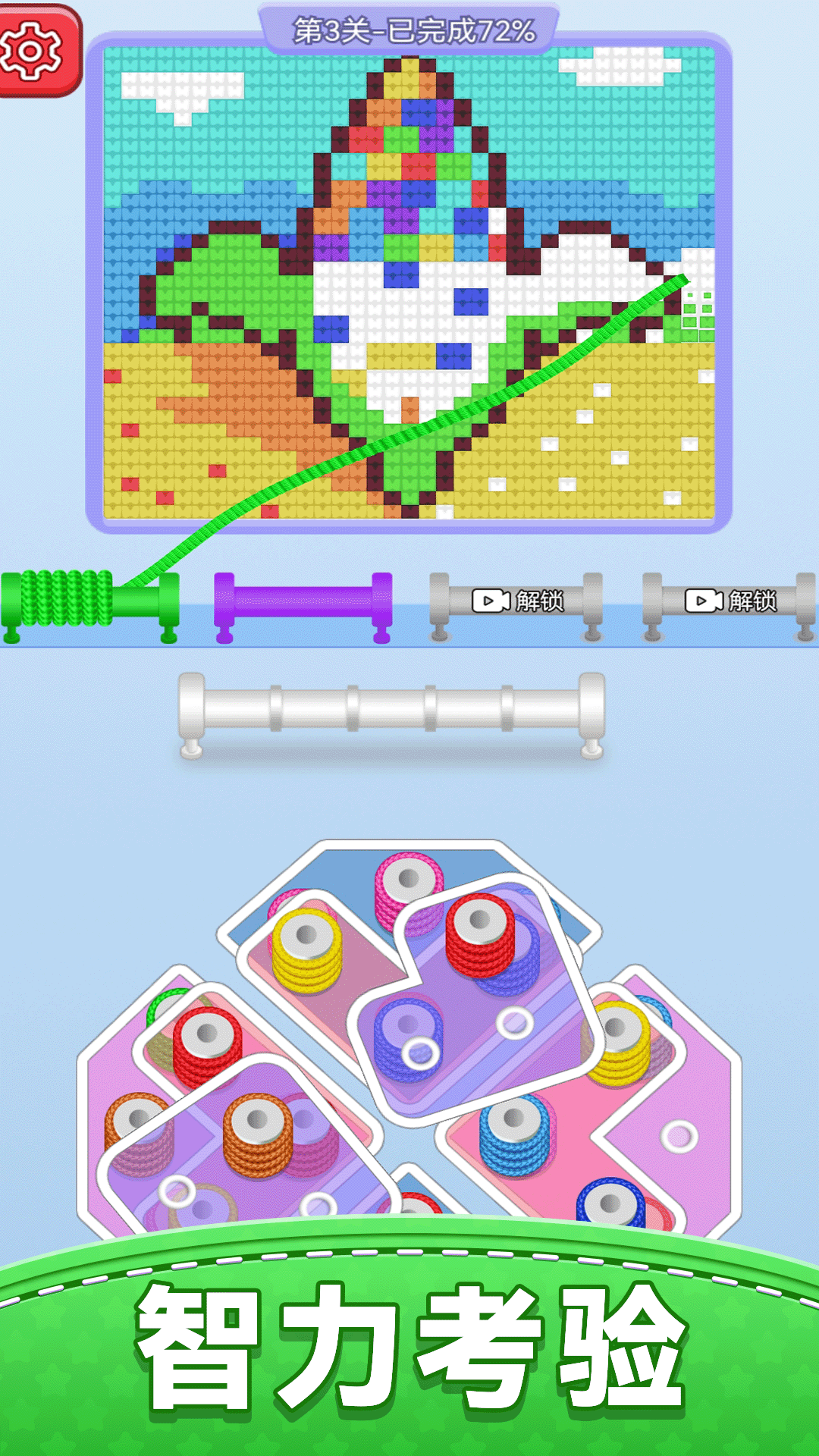 4、区分开所有颜色的毛线,完成图形的编织,就能顺利的过关,开启新的挑战。