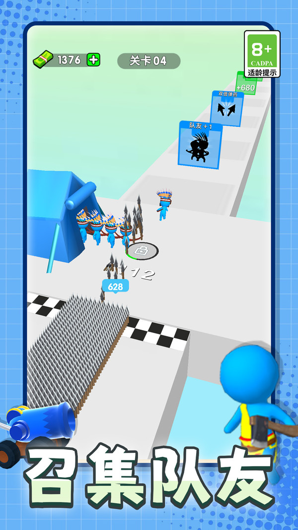 2、在终点处,根据你拥有的箭矢来形成你的军队,操控军队左右滑动扩大规模。