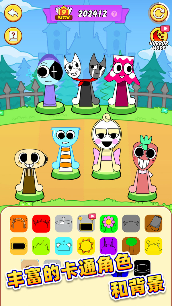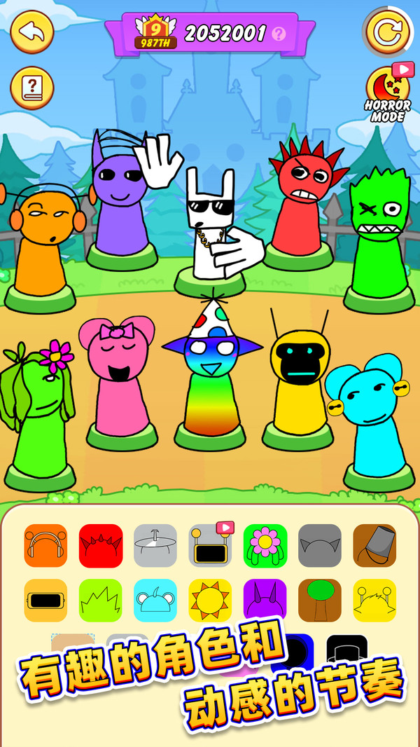 2、拖动特定图标,如黑色帽子到角色身上,可解锁恐怖模式,角色外貌和歌曲风格会彻底变化;