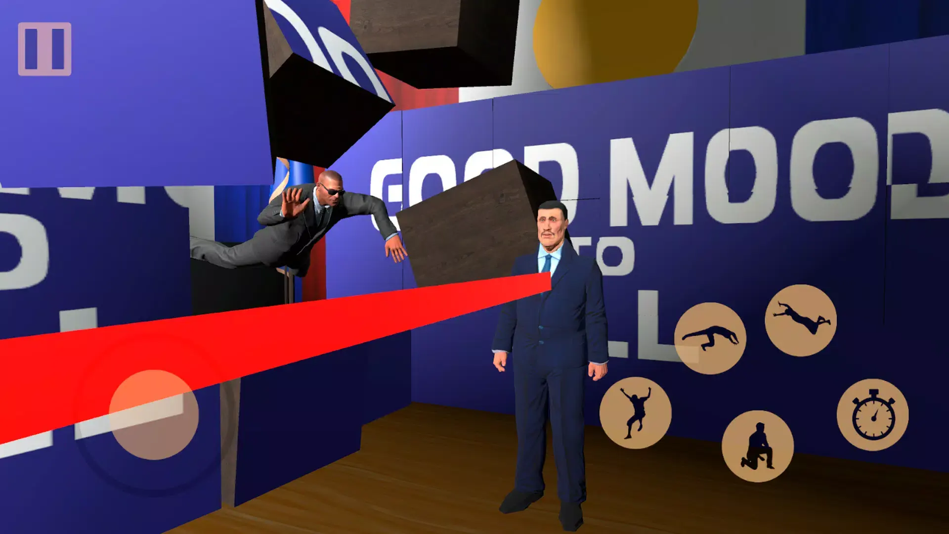 2、当危险发生时,迅速滑动屏幕控制角色扑向老板进行掩护,用身体阻挡子弹或爆炸冲击。
