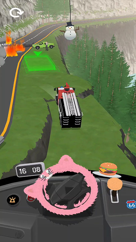 2、解锁并驾驶多种型号的卡车,每种卡车都有不同的长度、轴距和驾驶特性,需要灵活适应。