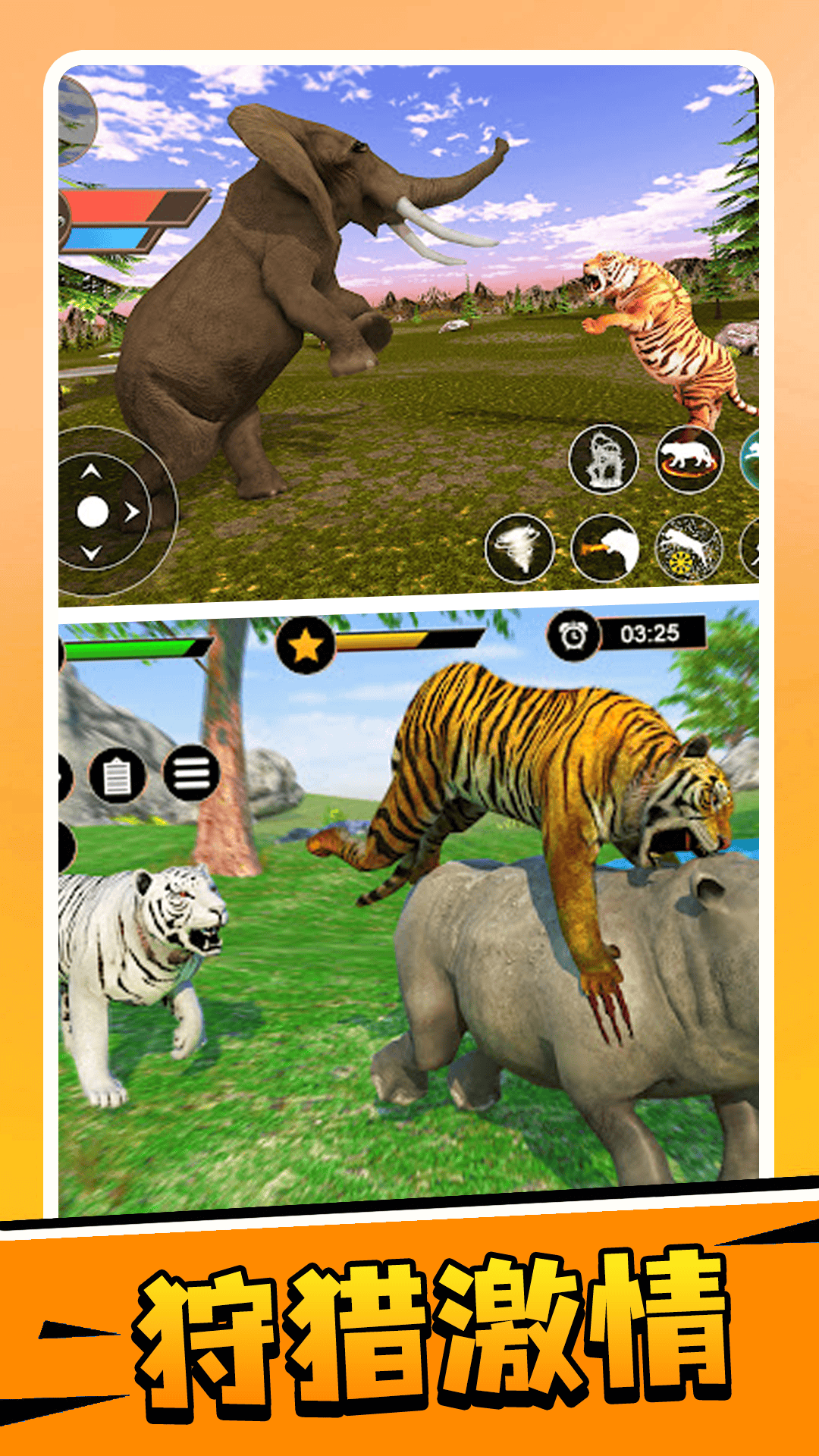 3、提供东北虎、孟加拉虎、华南虎等多种类选择,每种老虎有独特外观与技能树。