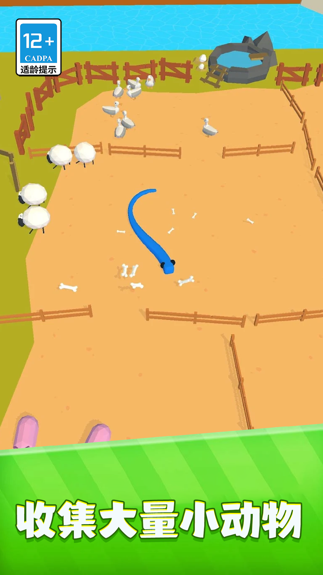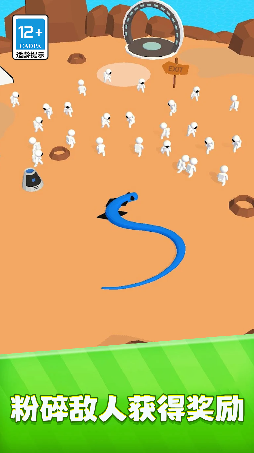 2、巧妙地操纵蛇身,将散落的火柴人包围起来,一旦合拢,即可瞬间吞噬,成就感爆棚。