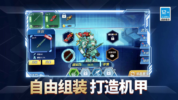 2、通过对战胜利获取资源,解锁并升级更高级别的机甲部件,不断提升机甲的属性与战斗力,是角色成长的主要路径。
