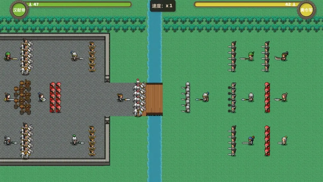 1、进入游戏,展现一个全新的战场,像素风格的战场设计,双方对战一触即发。