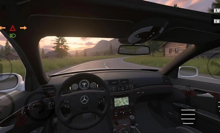 2. 车内视角完美还原真实驾驶舱布局,包括功能齐全的仪表盘与可调节的后视镜系统。