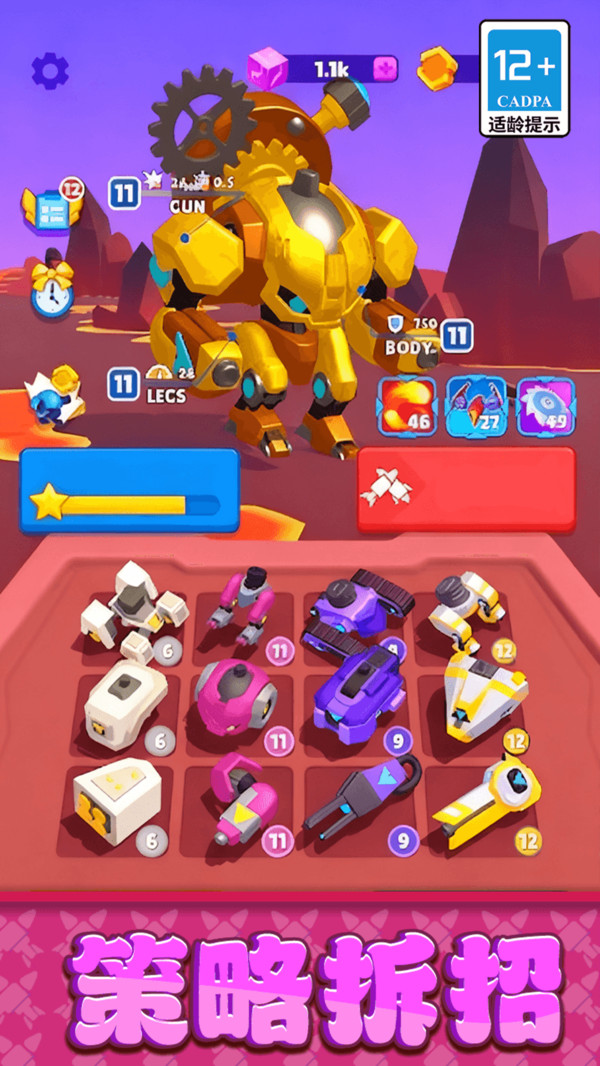 4、战斗之前,你可以利用金币购买机甲零件,相同等级部位可以合并升级。