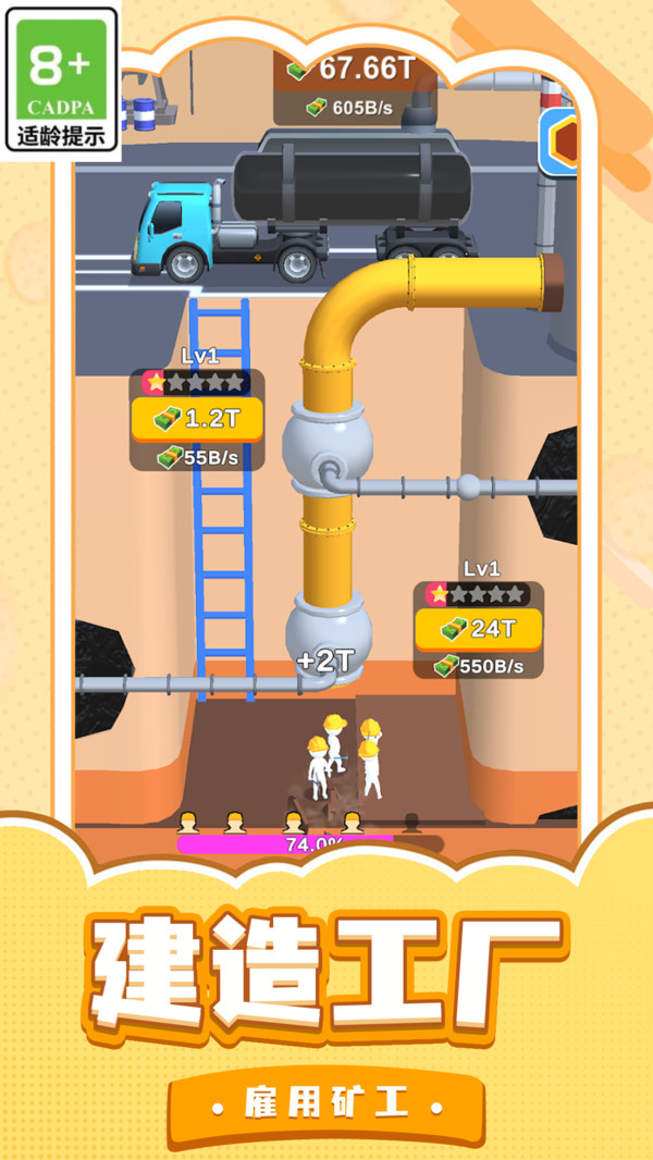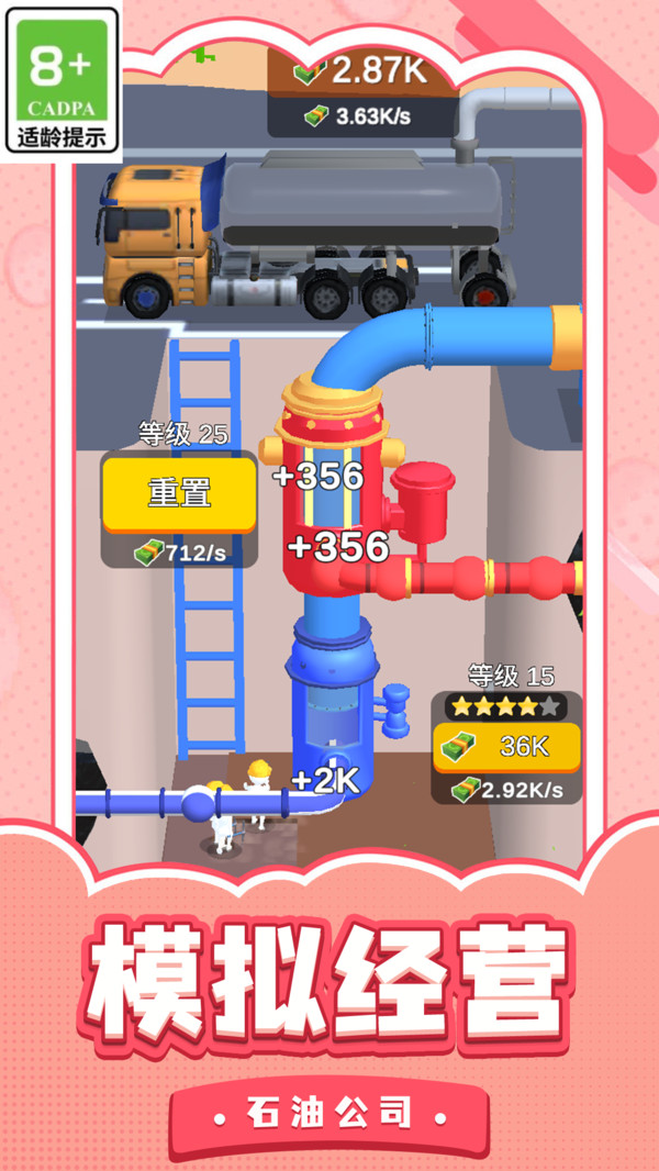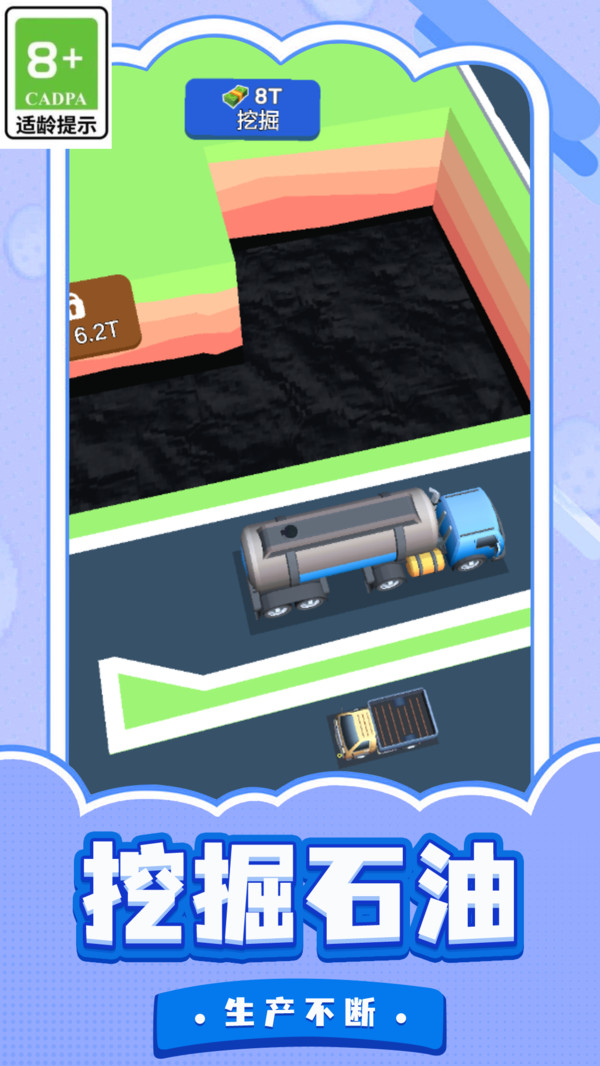 1、核心玩法是钻井获取原油,经炼油厂加工后出售,获得资金再投资于扩大再生产,形成盈利循环。