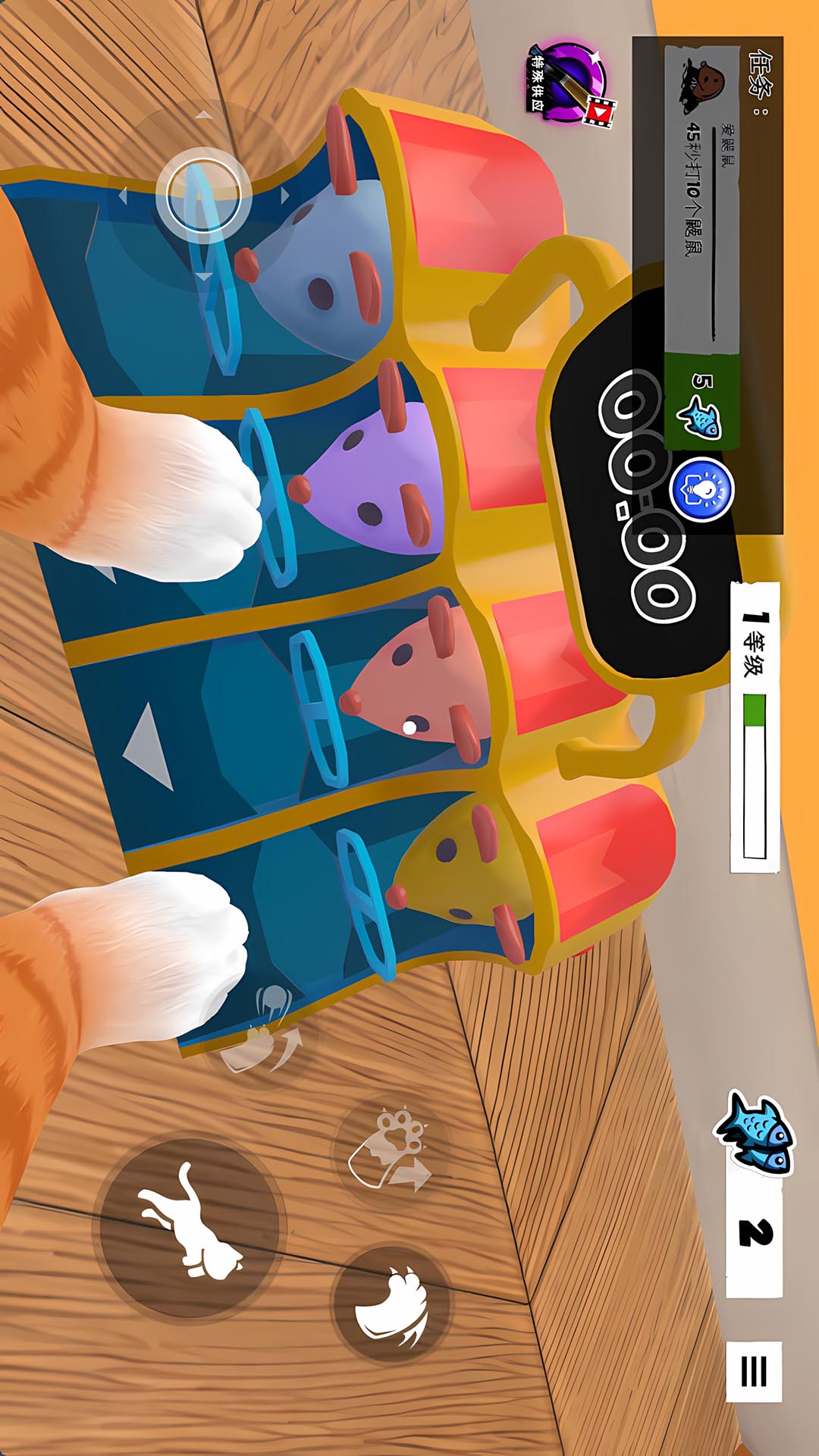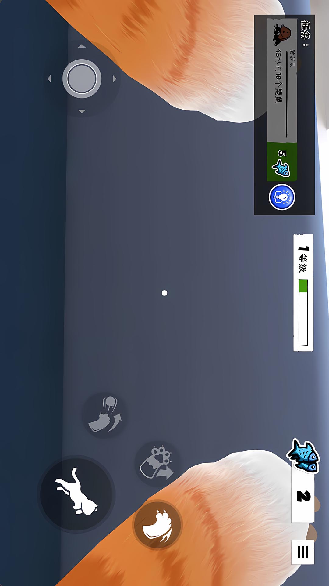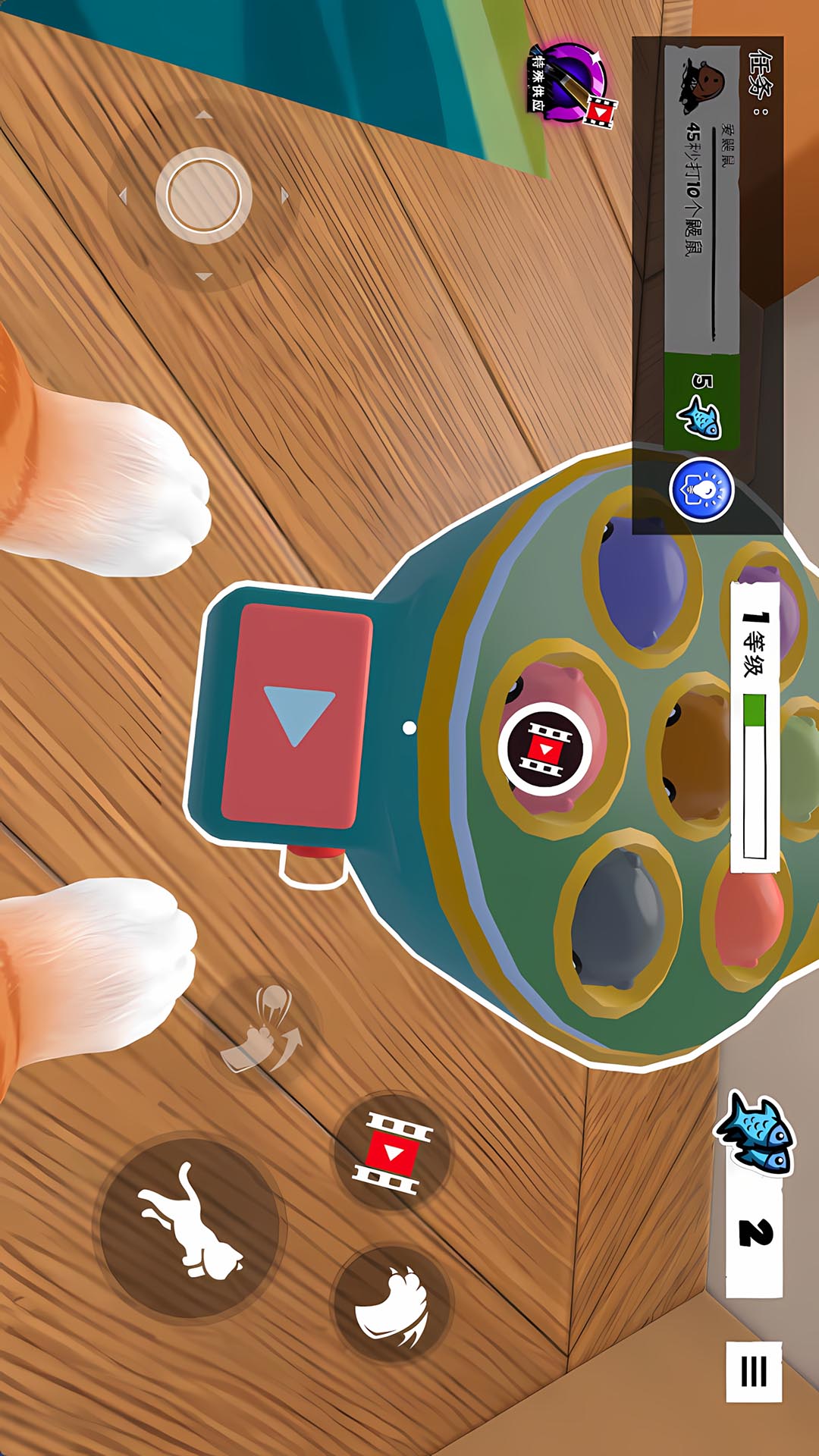 1、通过虚拟摇杆控制猫咪移动,靠近可互动物品时点击执行捣蛋动作。