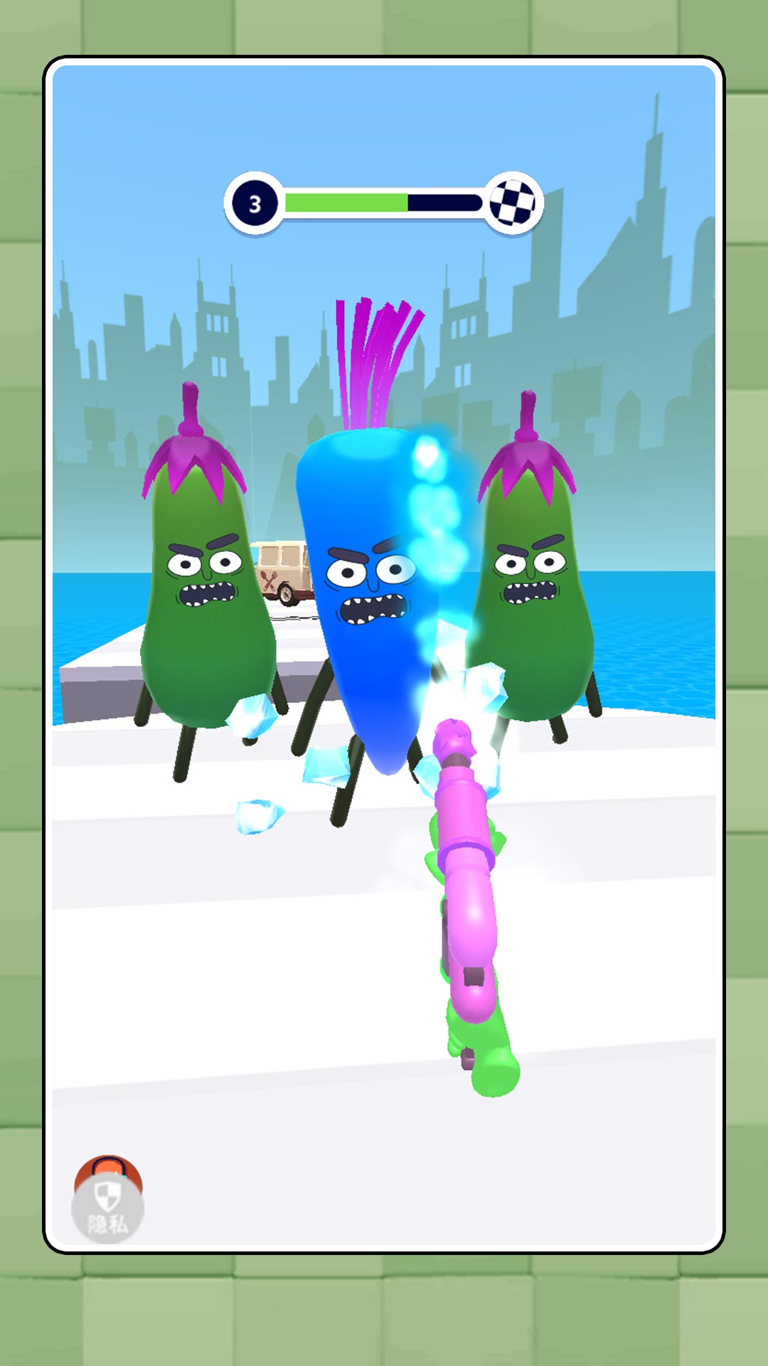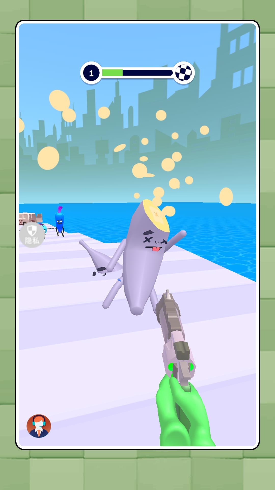 荒野射击战场模拟是一款热血刺激的水果蔬菜大战游戏,第一人称视角开始射击,精准的射击沿路的水果蔬菜,展开一场惊心动魄的对战,多种武器随机的选择,不断的解锁更强的火力,对沿路的敌人展开猛烈的攻击,将紧张射击、策略战斗与无厘头趣味完美结合的冒险闯关游戏。在这里,你将化身最后的防线,拿起武器,深入荒野,与这群疯狂的“水果”展开一场决定世界命运的大战。