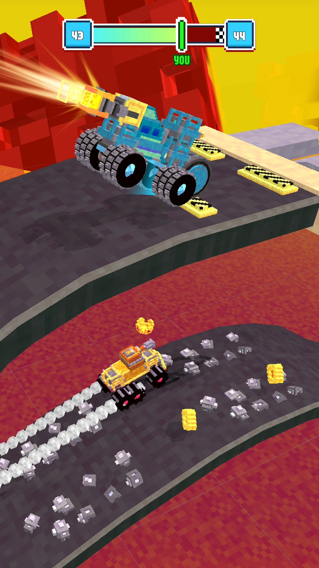 飞车狂欢之战是一款将越野驾驶的快感与激烈竞技完美融合的赛道狂飙游戏。玩家将驾驶性能各异的越野战车,在遍布泥泞、沙石与陡坡的复杂地形中极限前行。这不仅是对驾驶技术的终极考验,更是一场充满碰撞与策略的狂欢派对,每一次油门深踩都是向冠军发起的冲击。利用赛道上出现的临时武器,比如钉刺带和机油,巧妙干扰并阻挡其他赛车的前进路线。